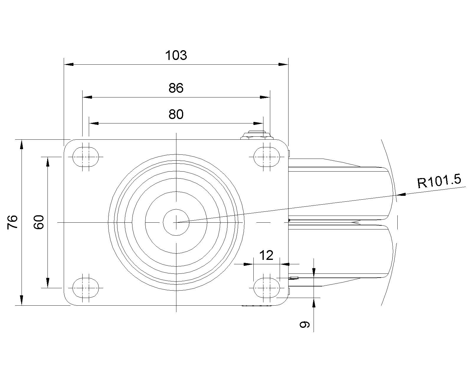 Swivel Caster, Welded Caster Fork, electroplated finish Mounting Type - Top Plate, 80x60 Bolt Hole Spacing High-Quality Impact-Resistant Polypropylene Wheel Center, High-Quality Reinforced Polypropylene Rubber (TPR) Wheel Tread Cast Iron light gray, Bearing—Ball Bearings |