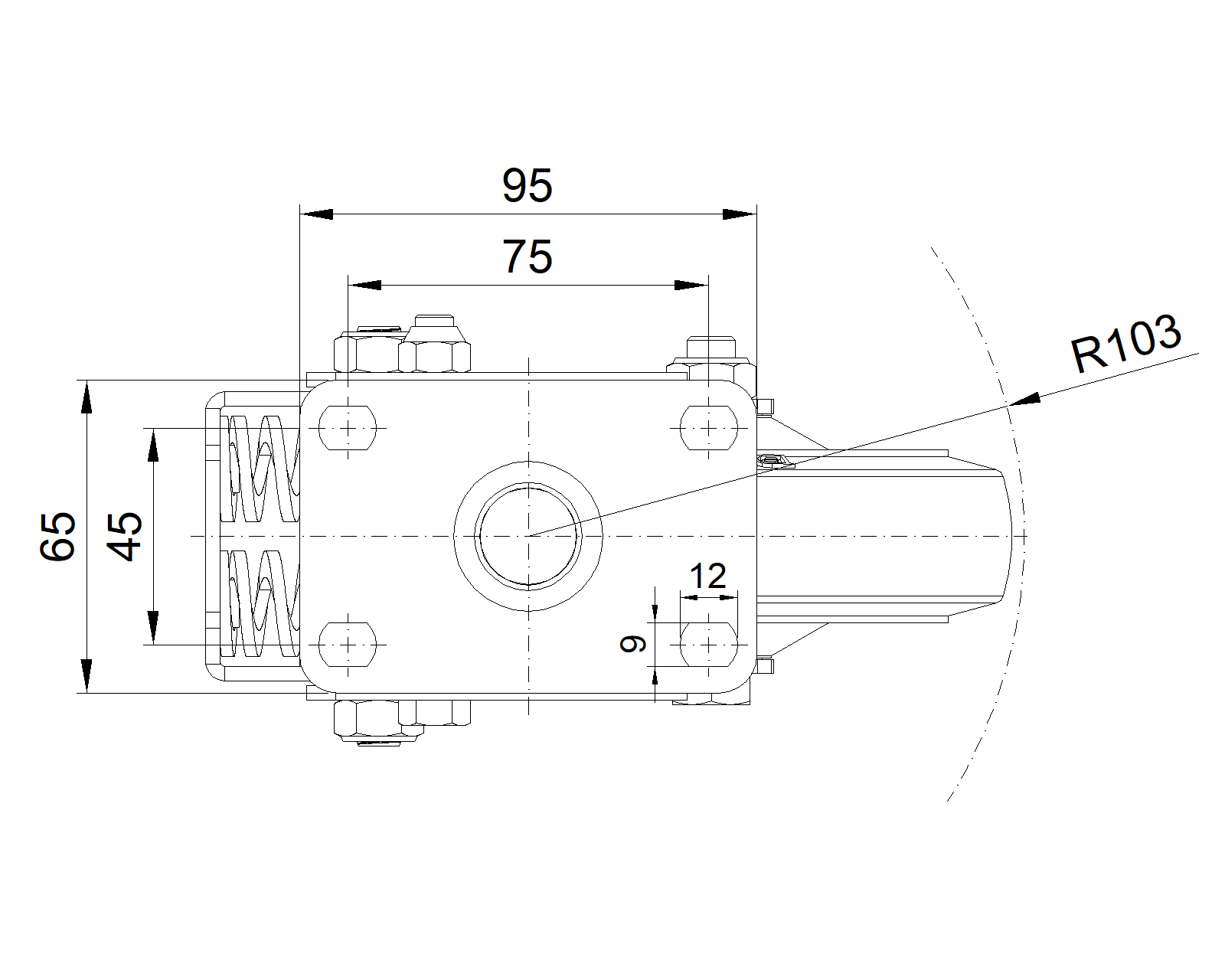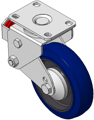 Spring-loaded Caster with Welded Caster Fork Zine-Plated, Mounting Type - Top Plate, 75x45 Bolt Hole Spacing Cast Iron Wheel Center with High Quality Polyurethane tread, black-blue Bearing—Ball Bearing |