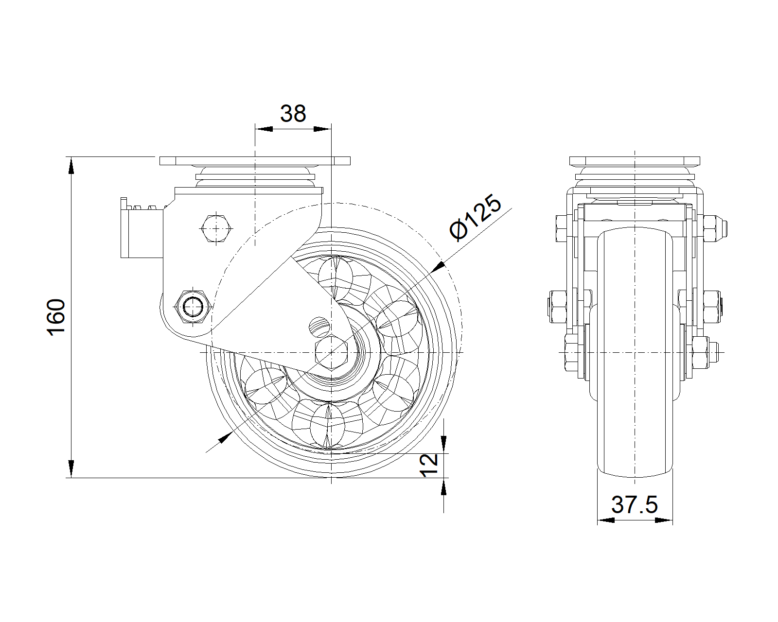 Wheel tread: Made of high-quality polyurethane Wheel Center: iron core/cast iron Drawings are for reference only and may differ from the product |