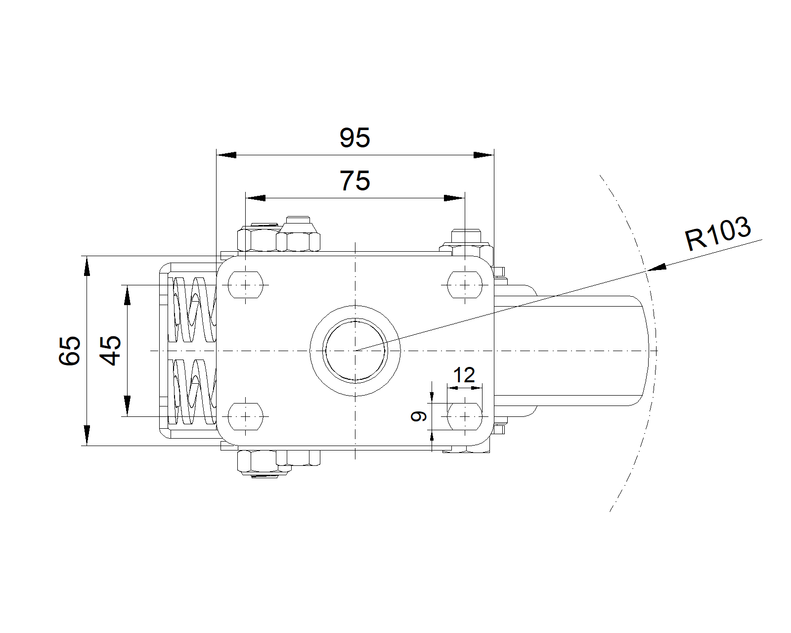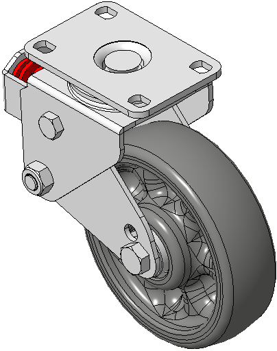 Spring-loaded Caster with Welded Caster Fork Zine-Plated, Mounting Type - Top Plate, 75x45 Bolt Hole Spacing Cast Iron Wheel Center with High Quality Polyurethane tread Pearl-finish dark gray, Bearing—Ball Bearing |