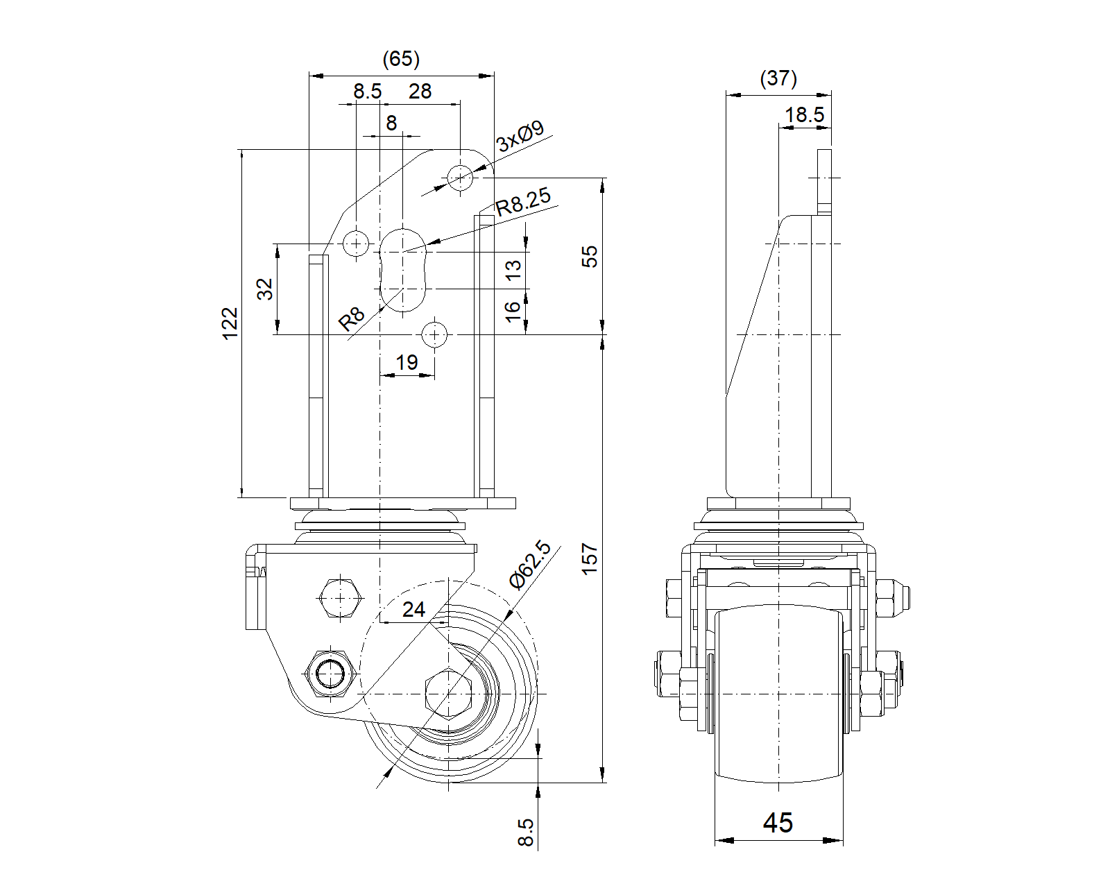 Wheel Tread: Made of high-quality polyurethane Wheel Center: iron core/cast iron core Drawings are for reference only and may differ from the product |