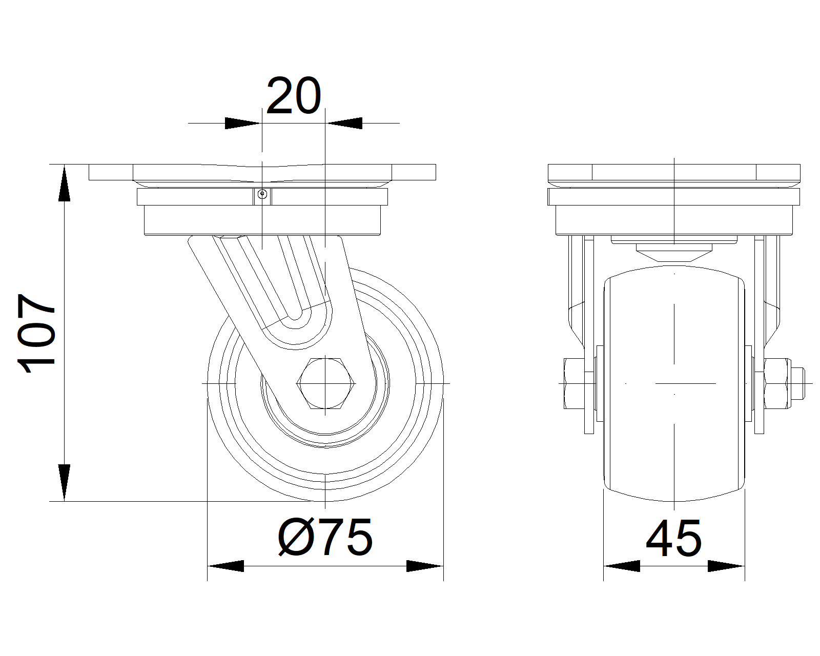 Wheel tread: Made of high quality polyurethane Wheel Center: iron core/cast iron Drawings are for reference only and may differ from the product |