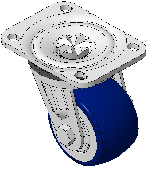 Swivel castor, Welded Caster Fork Extended control lever surface, Top Plate Mounting Type, Hole spacing 80x60 Cast Iron Wheel Center, High Quality Polyurethane Wheel Tread Iron blue, Bearing - Ball Bearing |