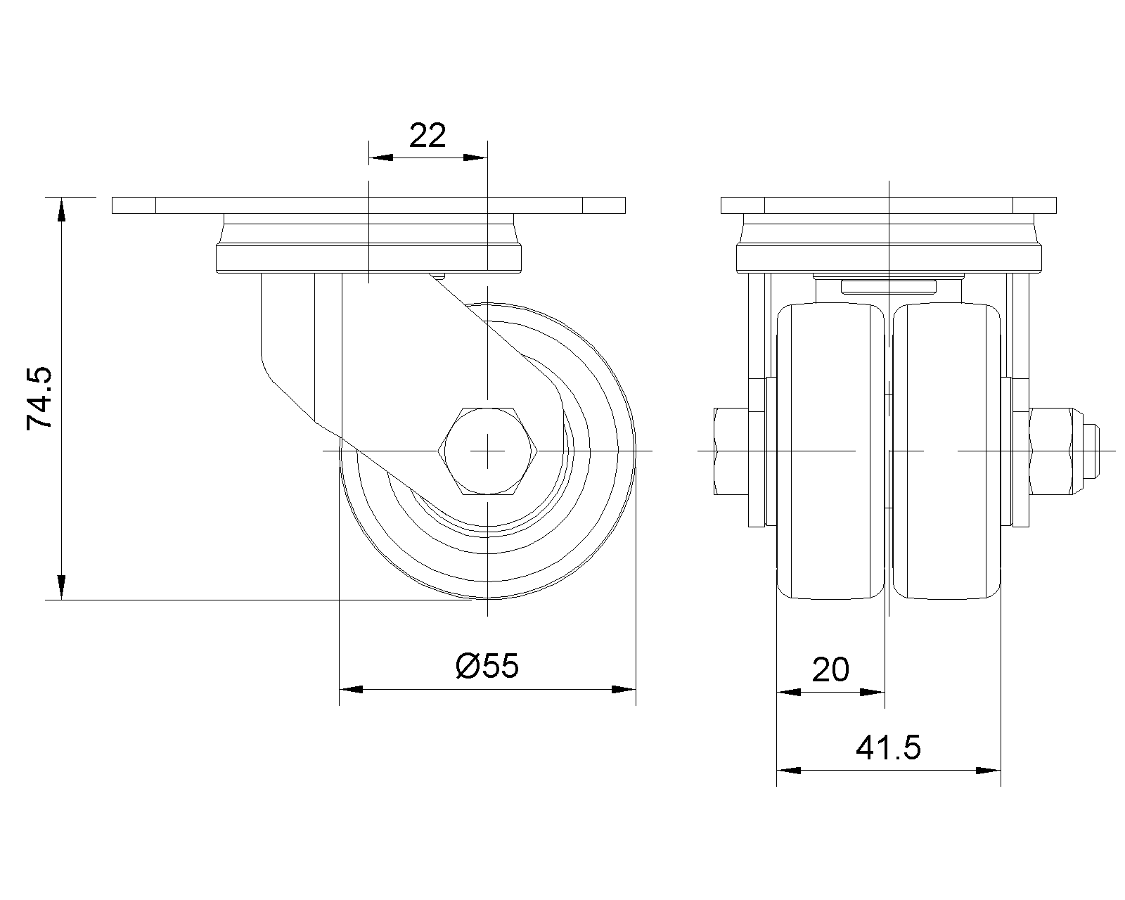 活動式腳輪,焊接鋼板架 表面鍍鋅,底板式安裝裝置,孔距70X37 鑄鐵製輪芯,高品質聚氨酯輪面,銑藍色 輪子軸承—特製的精密滾珠,降低運轉阻力 ZQPU雙輪,符合人體工學,更容易啟動和轉動 |