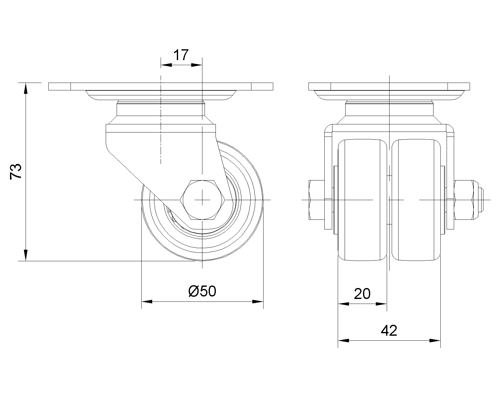 活動式腳輪,焊接鋼板架,表面鍍鋅 底板式安裝裝置,孔距75X45 鑄鐵製輪芯,高品質聚氨酯輪面,銑藍色 輪子軸承—特製的精密滾珠,降低運轉阻力 ZQPU雙輪,符合人體工學,更容易啟動和轉動 |