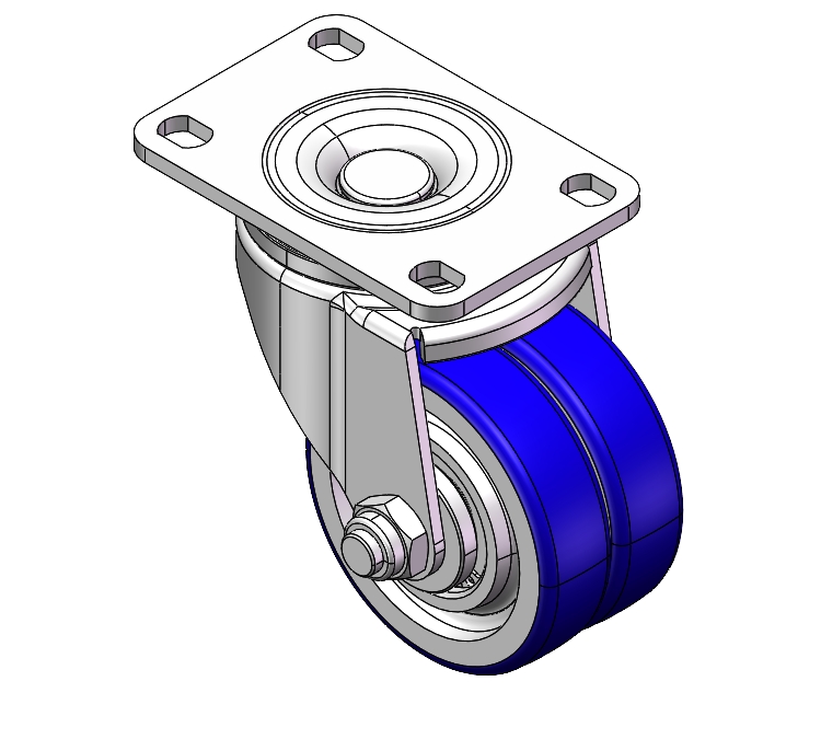 表面鍍鋅,底板式安裝裝置 鑄鐵製輪芯,高品質聚安酯輪面 藍色,輪子軸承—精密滾珠。 |