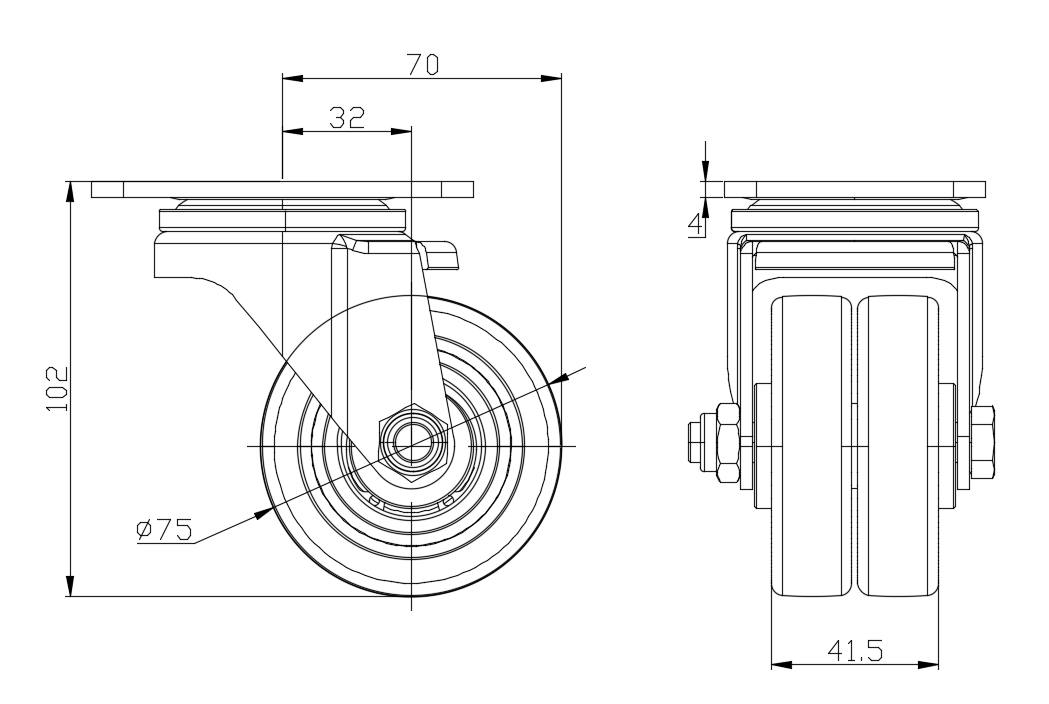 | ZQPU輪 (銑蓝) 輪徑 × 輪寬 75 x 20(41.5)mm |