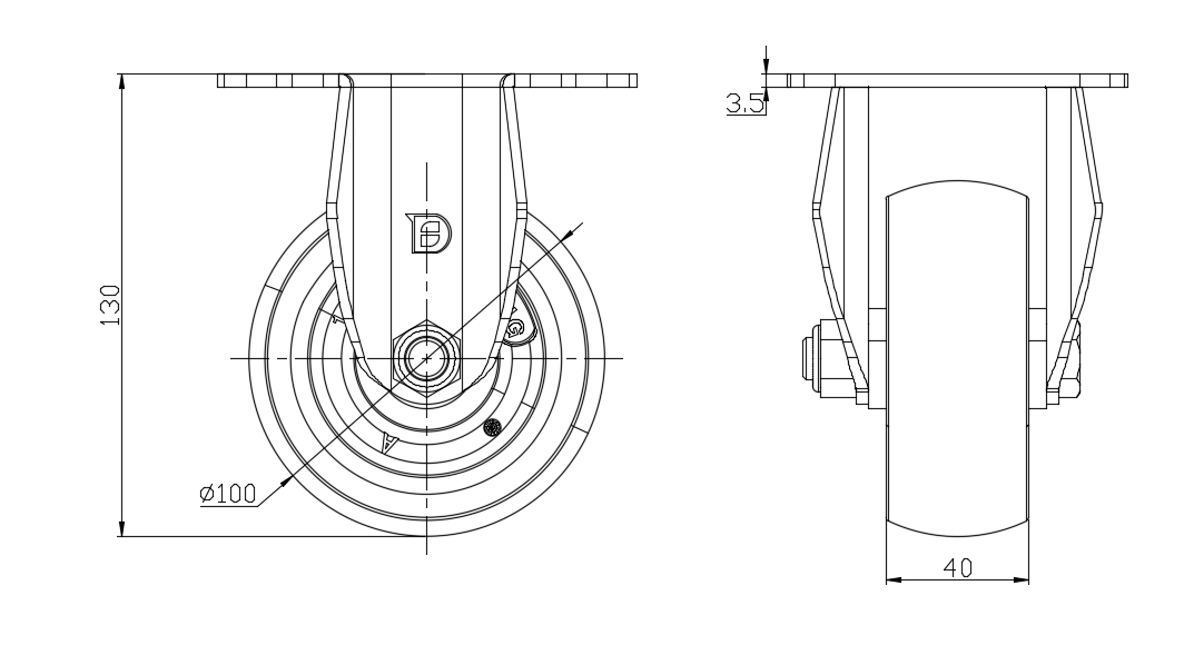 | 固定式腳輪,一體成型沖壓腳架—高級孔