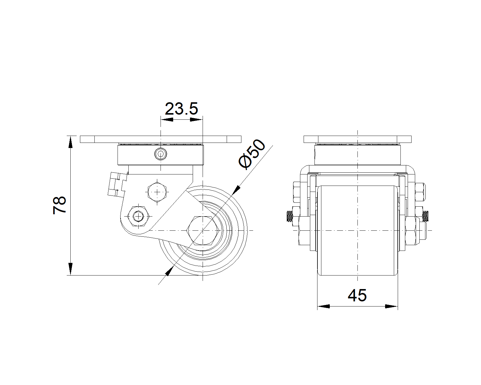 | Bánh QPU (Lam Cung) Đường kính × Chiều rộng bánh 50 × 45mm |