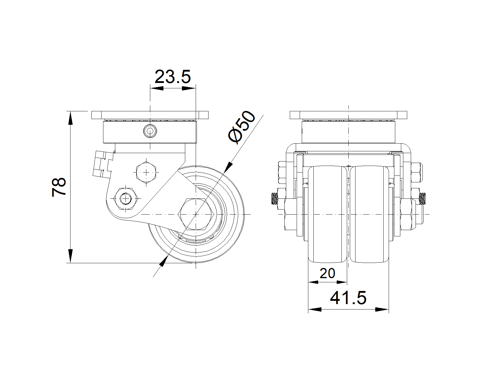| Chống tĩnh điện ZQPU Bánh xe (phay đen) Đường kính bánh xe × Chiều rộng bánh xe 50 x 20(41.5)mm |