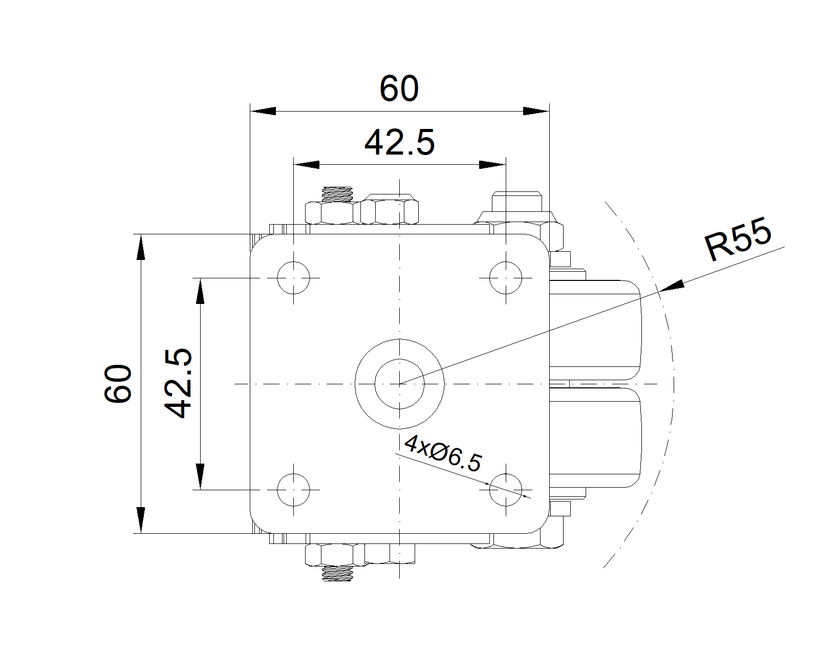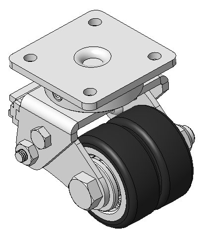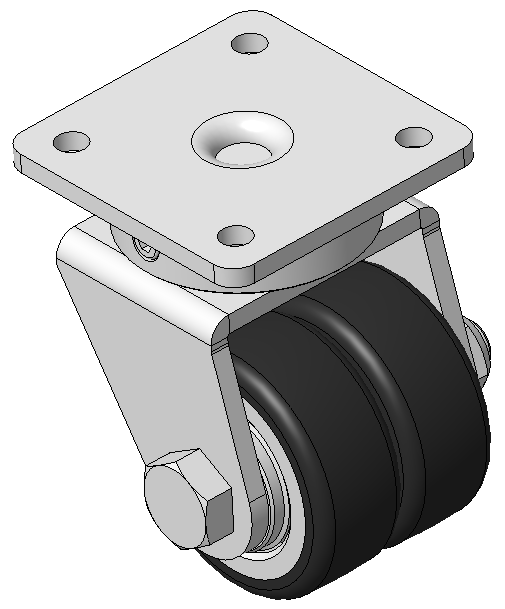 Hoàn thiện mạ kẽm, lắp đế, khoảng cách lỗ 42,5 x 42,5 Lõi gang với gai polyurethane chất lượng cao, chống tĩnh điện Vòng bi bánh xe màu đen—vòng bi chính xác |