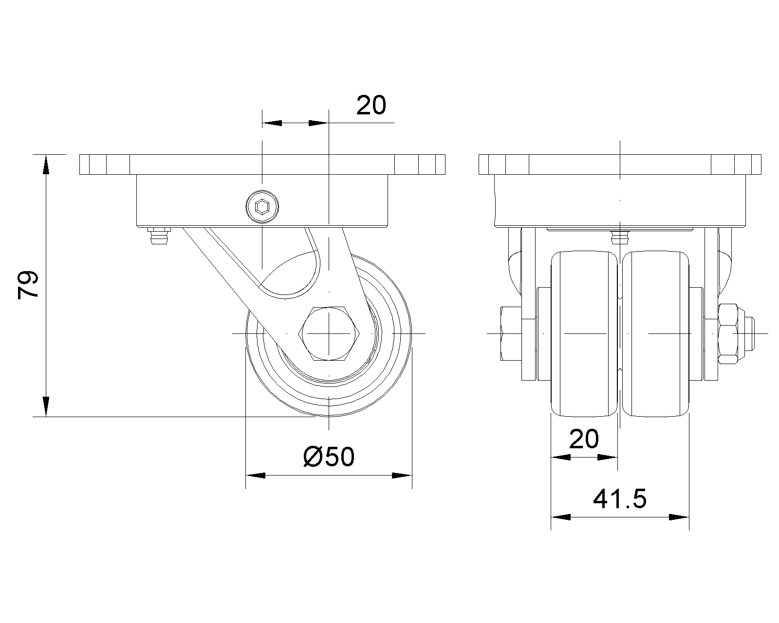| Chống tĩnh điện ZQPU Bánh xe (phay đen) Đường kính bánh xe × Chiều rộng bánh xe 50 x 20(41.5)mm |