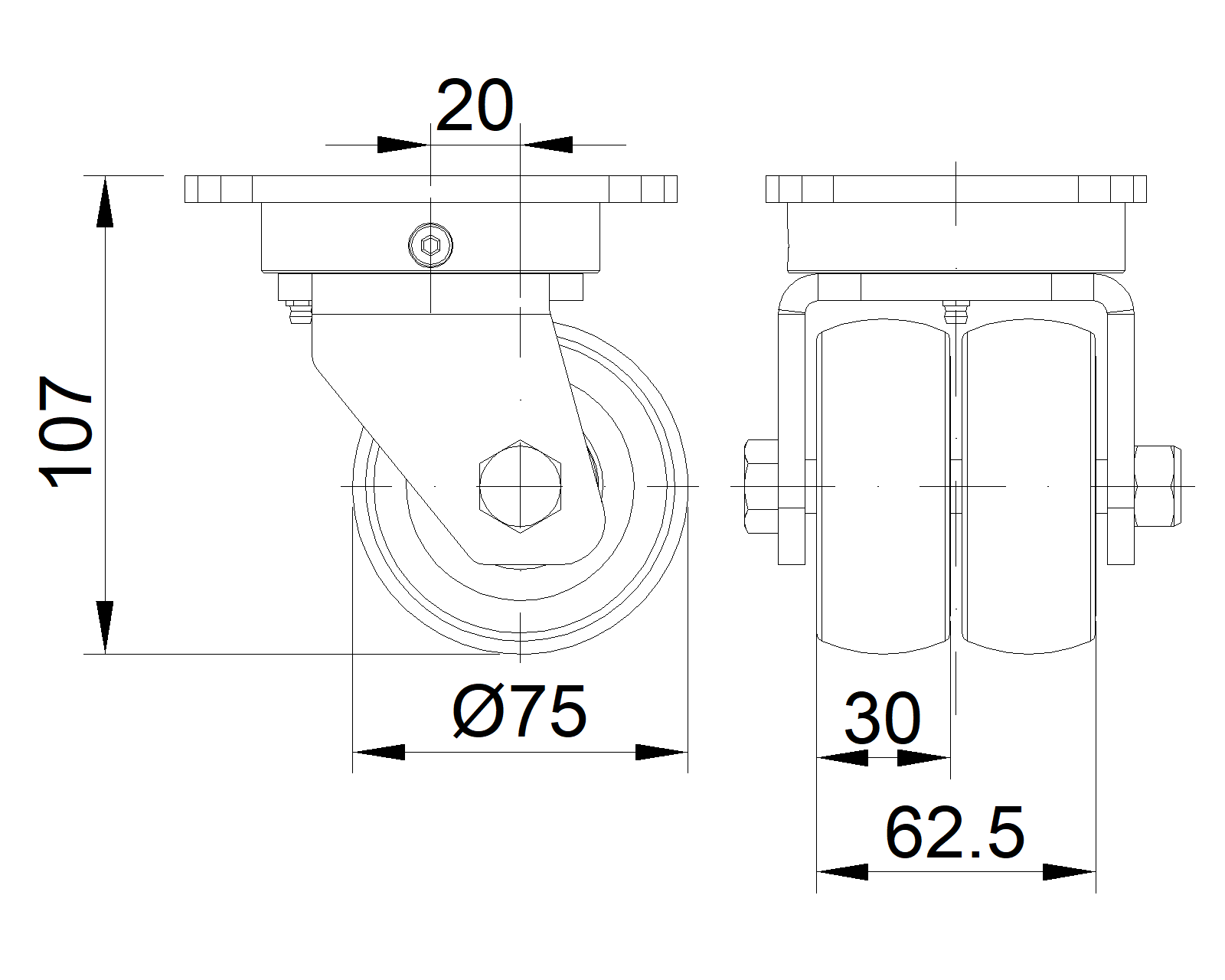 | Bánh xe QPU (màu nâu) đường kính bánh xe × chiều rộng bánh xe 75 x 31mm |