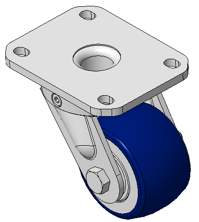 Lớp mạ vàng, lắp trên đế, khoảng cách lỗ 80x60 Lõi nhôm, mặt lốp polyurethane chất lượng cao Vòng bi bánh xe phay màu xanh lam—vòng bi chính xác |