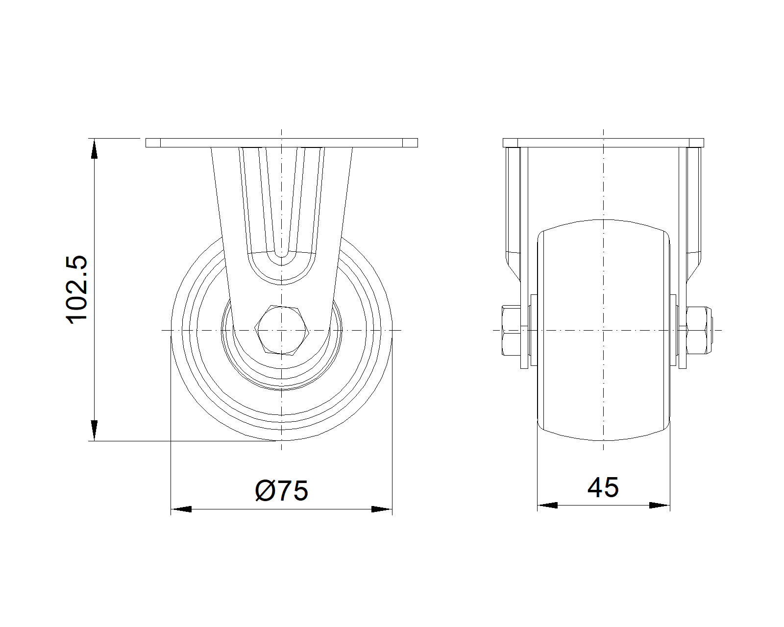| QPU Bánh xe (hồ quang xanh) Đường kính bánh xe × Chiều rộng bánh xe 75 x 45mm |