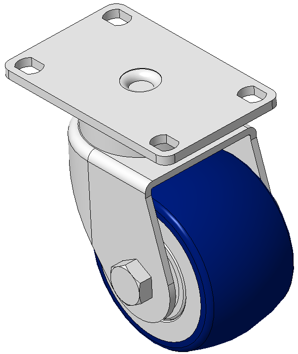 Lớp mạ vàng, lắp đế, khoảng cách lỗ 75x45 Lõi nhôm, mặt lốp polyurethane chất lượng cao Vòng bi bánh xe phay màu xanh lam—vòng bi chính xác |