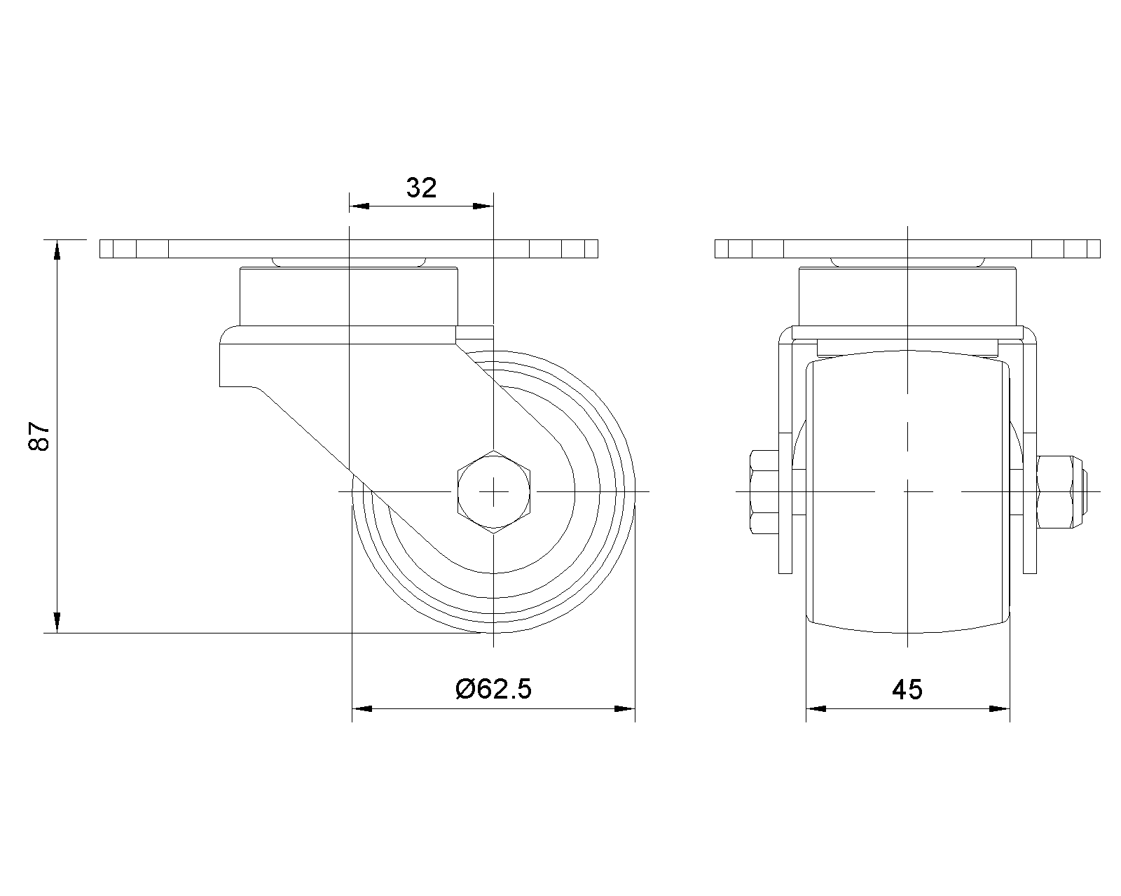 | QPU Bánh xe (hồ quang xanh) Đường kính bánh xe × Chiều rộng bánh xe 62.5 x 45mm |