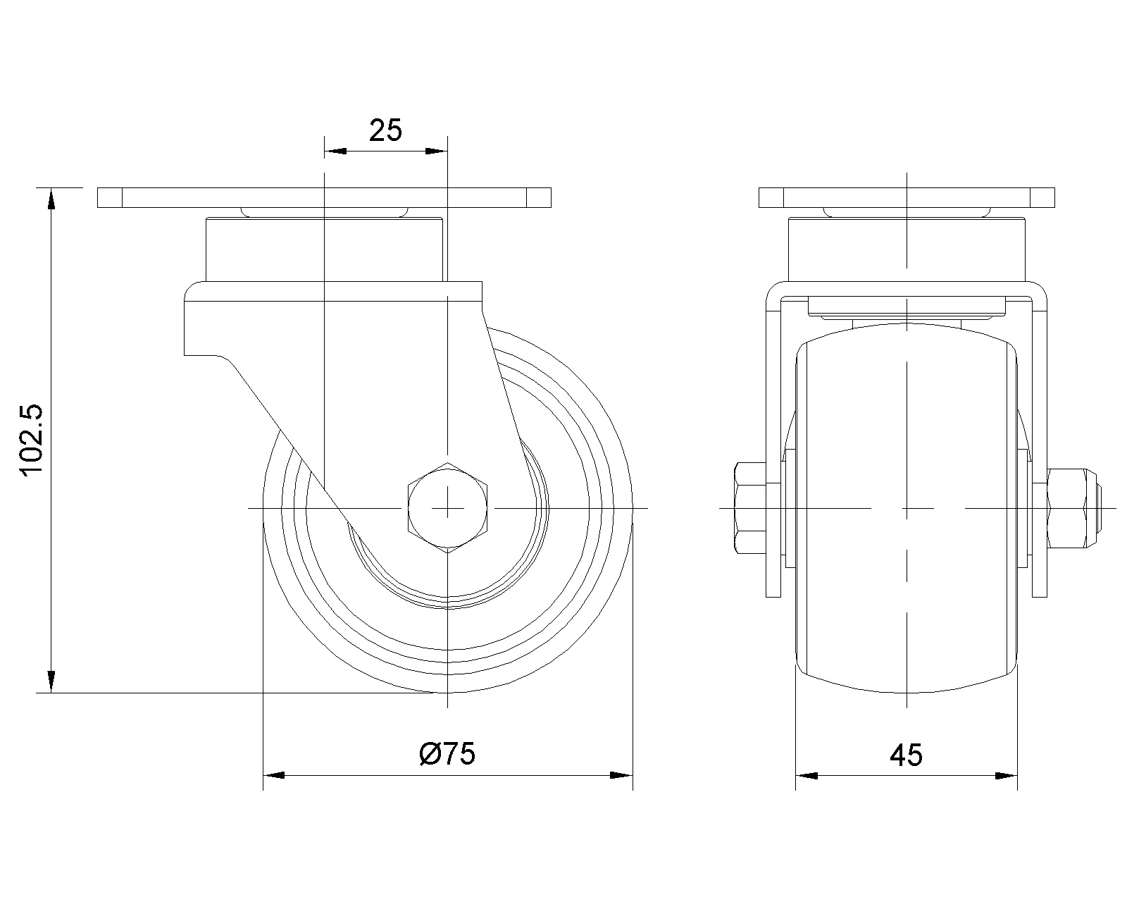 | QPU Bánh xe (hồ quang xanh) Đường kính bánh xe × Chiều rộng bánh xe 75 x 45mm |