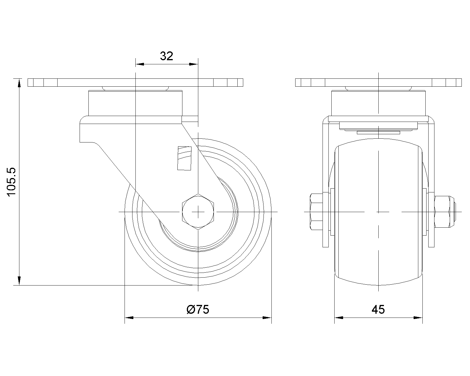 | QPU Bánh xe (hồ quang xanh) Đường kính bánh xe × Chiều rộng bánh xe 75 x 45mm |