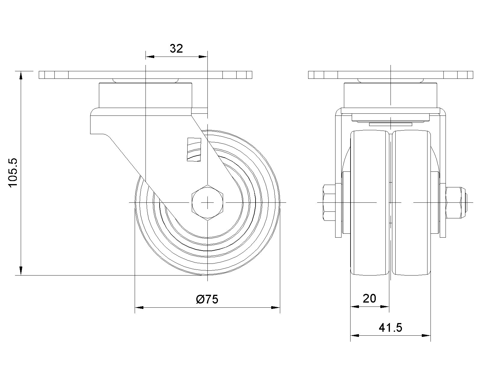 | Chống tĩnh điện ZQPU Bánh xe (phay đen) Đường kính bánh xe × Chiều rộng bánh xe 75 x 20(41.5)mm |