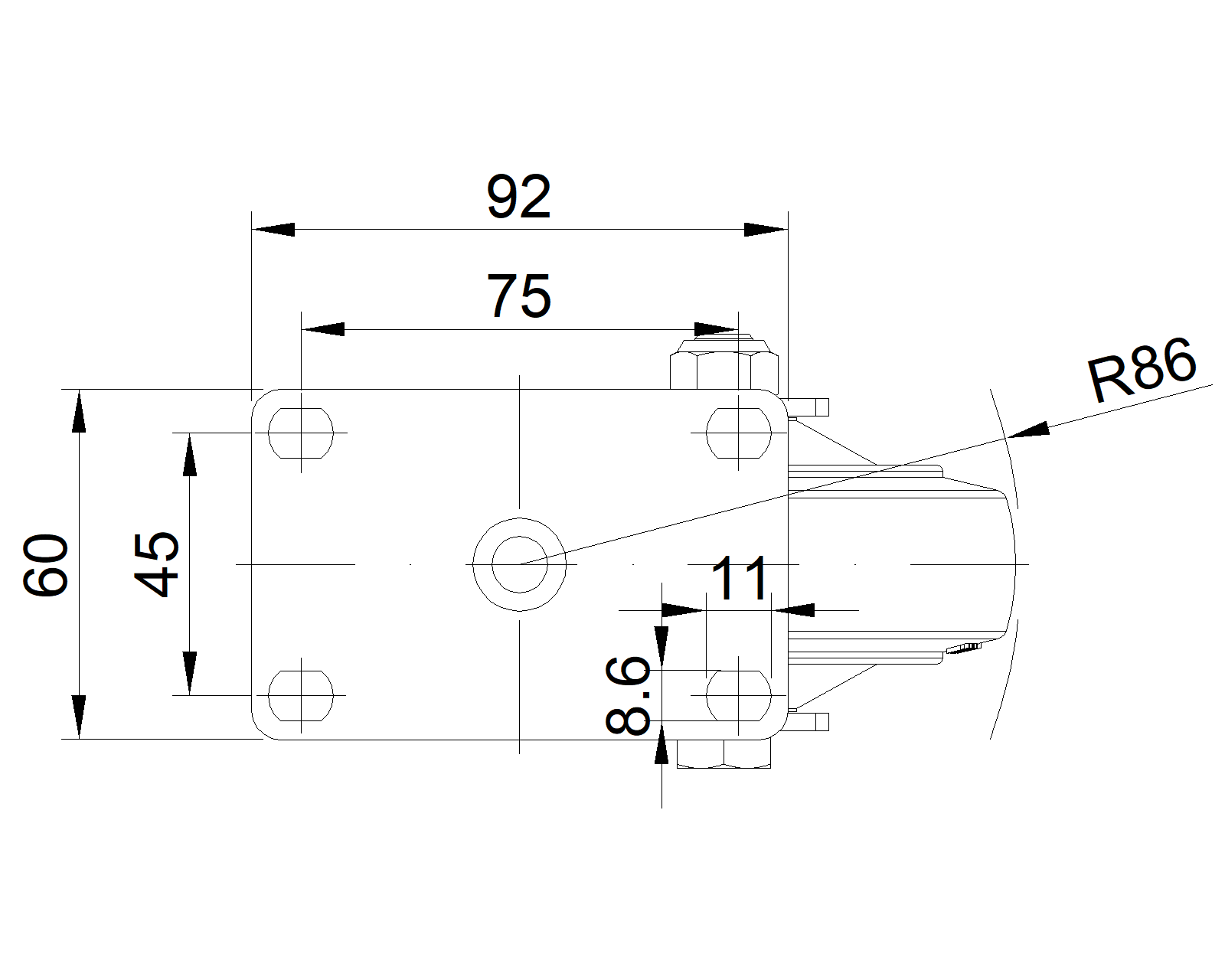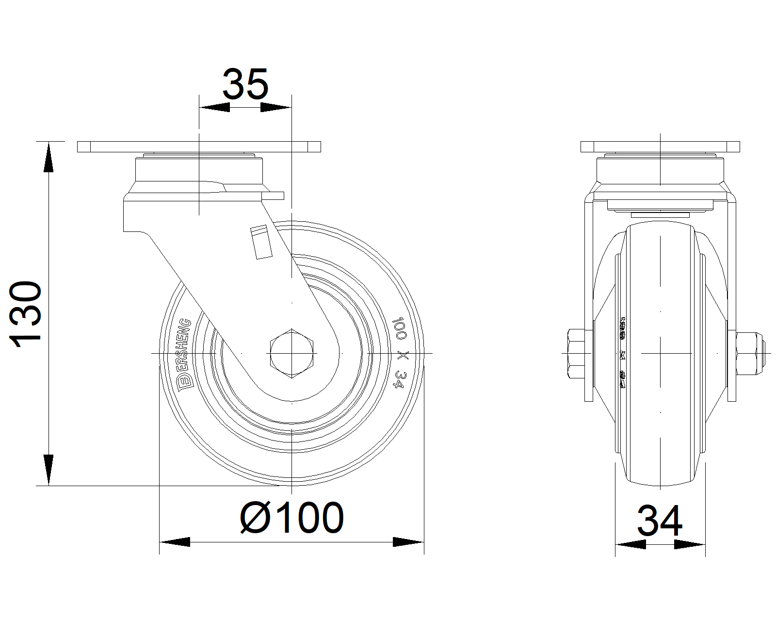 | Bánh xe xoay có đế đinh tán và đế dập—lỗ cao cấp