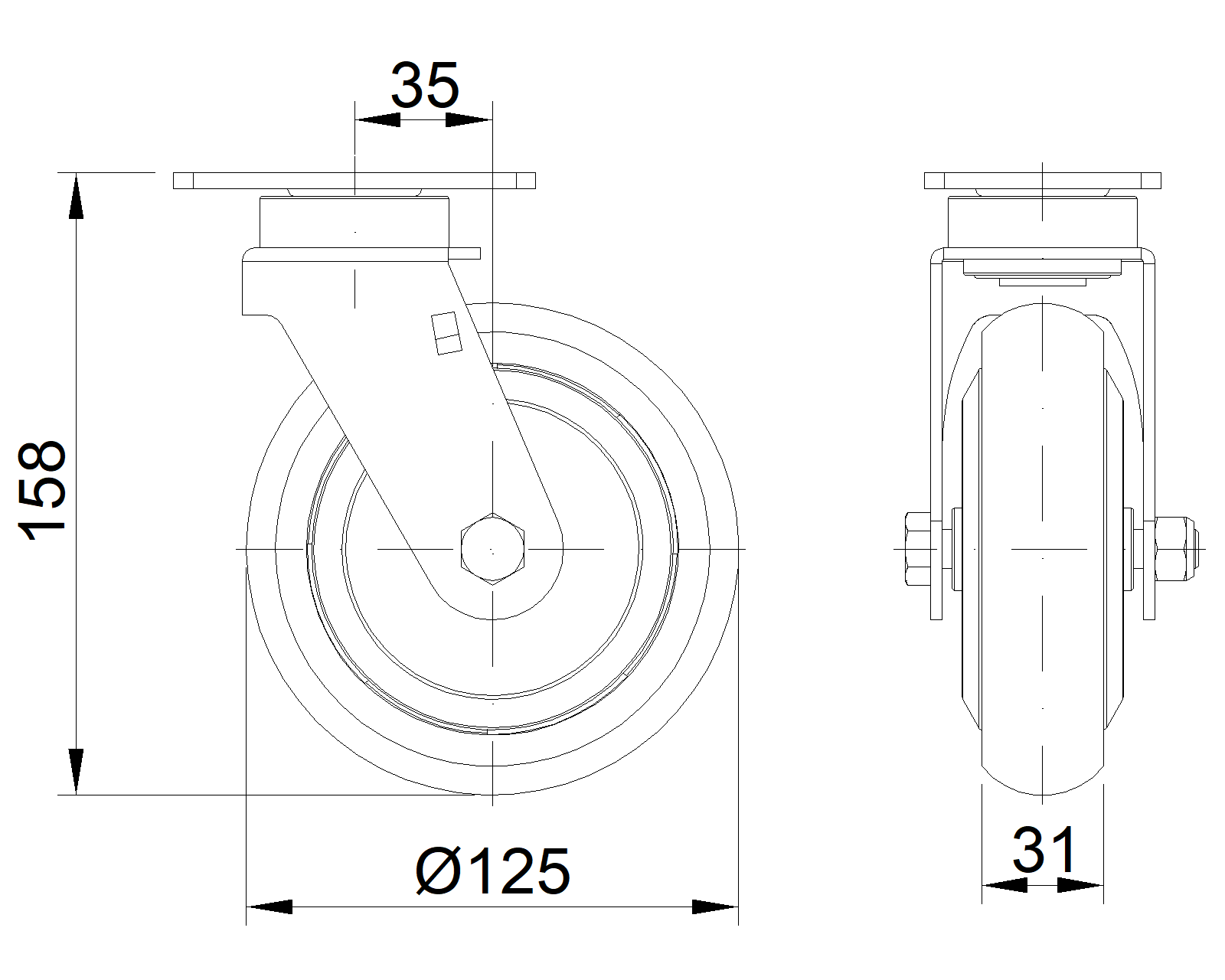 | Bánh xe AQPU (màu xám) đường kính bánh xe × chiều rộng bánh xe 125 x 31mm |