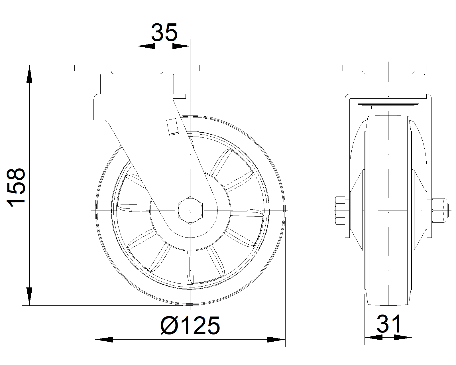 | 1165 Series — AMR/AGV-3 Bánh xe càng xoay (tải vừa) ổ bi chính xác đôi |