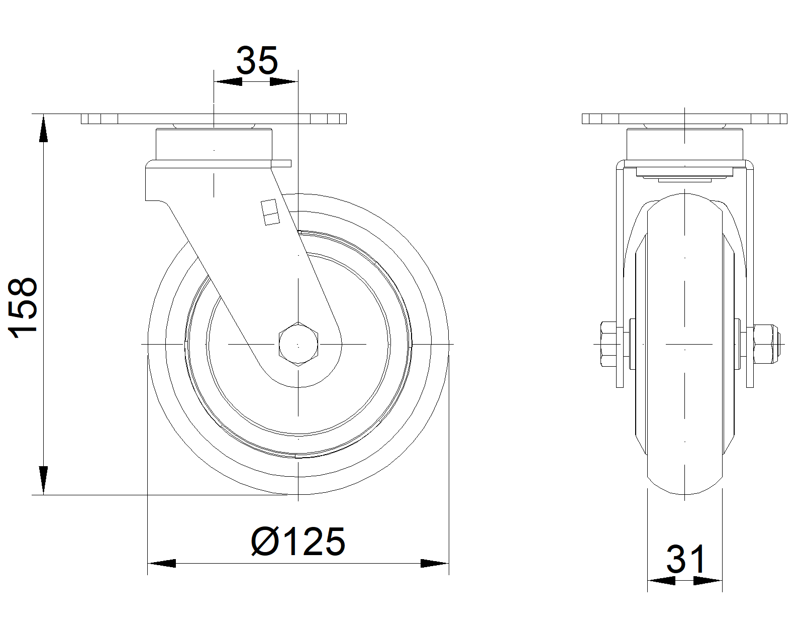 | Bánh xe AQPU (màu xám) đường kính bánh xe × chiều rộng bánh xe 125 x 31mm |