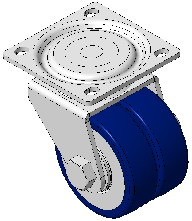 Bánh xe xoay, đế bánh xe được tán đinh và dập lỗ cao cấp Hoàn thiện mạ điện, lắp đế bánh xe, khoảng cách lỗ 55x52 Lõi gang, mặt lốp polyurethane chất lượng cao Hoàn thiện màu xanh, ổ trục bánh xe—ổ trục bi chính xác. |