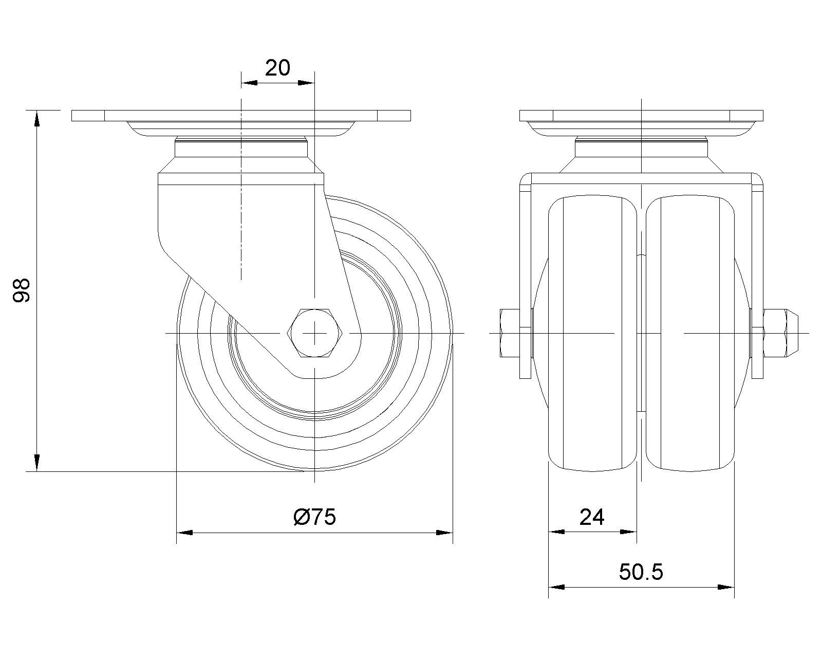 | PPR Bánh xe dẫn điện (màu đen và màu xám nhạt) Đường kính bánh xe × Chiều rộng bánh xe 75,5 x 24mm |
