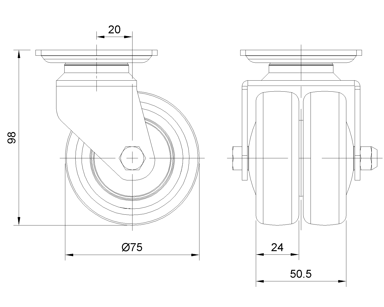 | PPR Bánh xe dẫn điện (màu đen và màu xám nhạt) Đường kính bánh xe × Chiều rộng bánh xe 75,5 x 24mm |