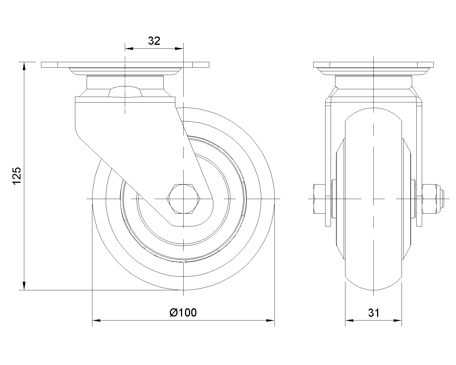 | AQPU Bánh xe (Xám vòng cung) đường kính bánh xe × chiều rộng bánh xe 100 x 31mm |
