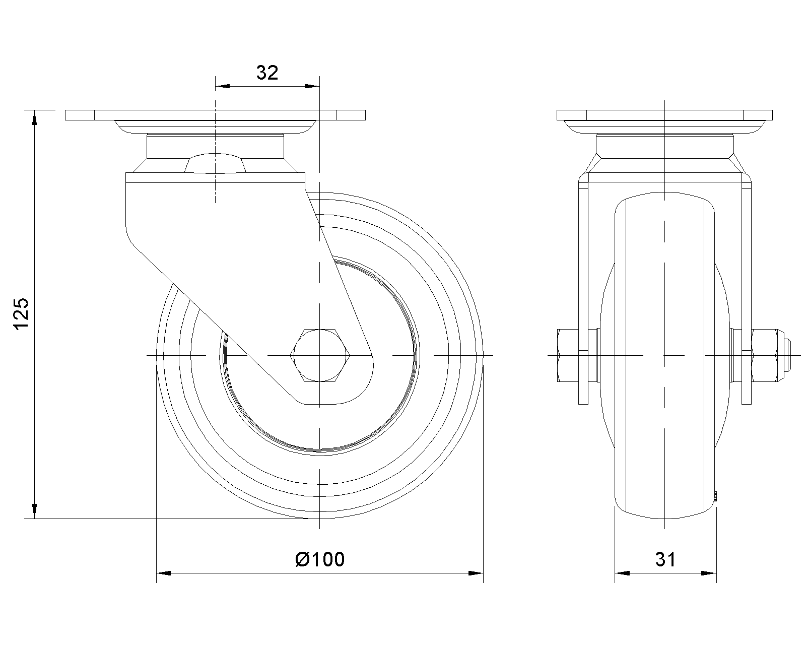 | PPR Bánh xe dẫn điện (màu đen và màu xám nhạt) Đường kính bánh xe × Chiều rộng bánh xe 100 x 31mm |
