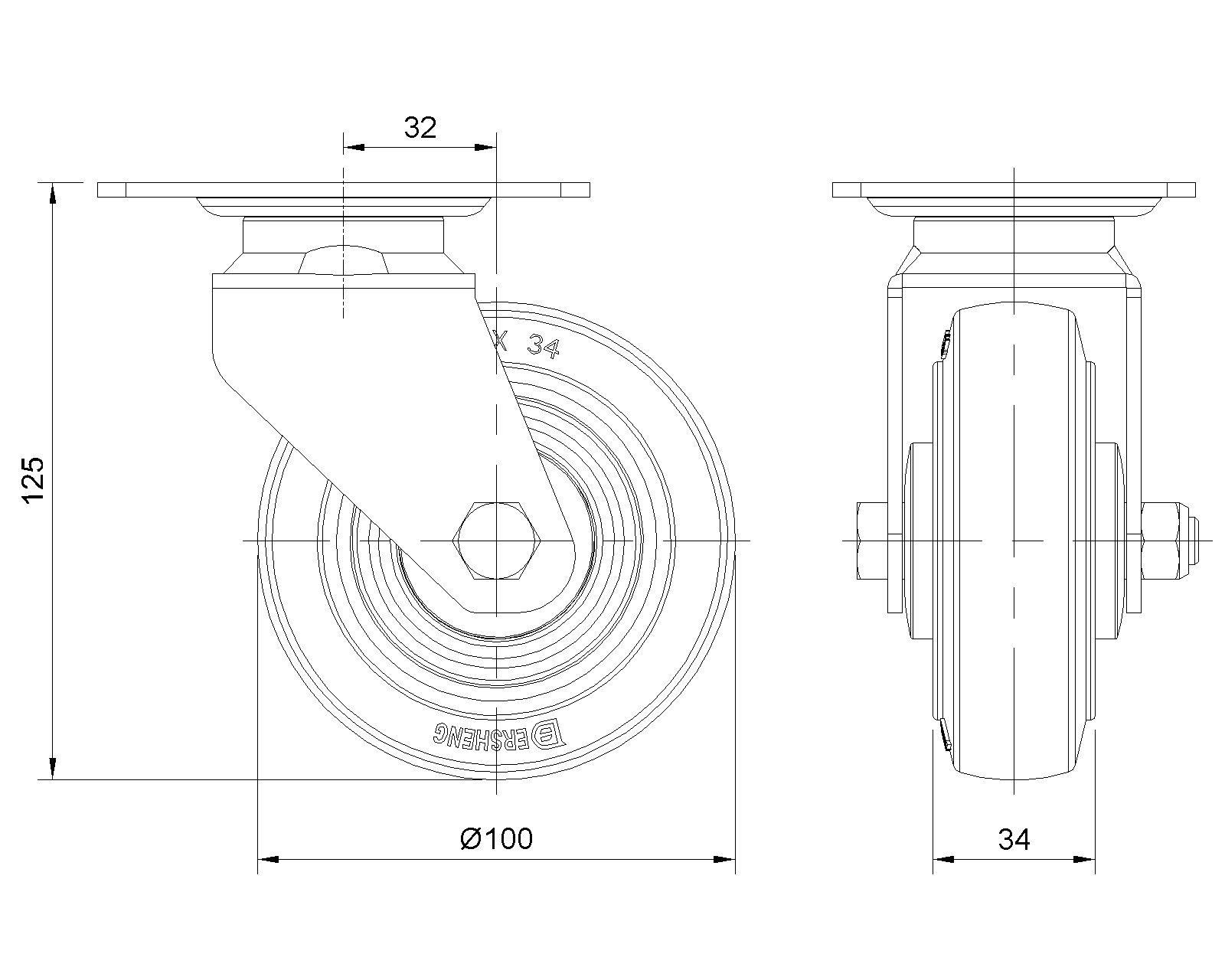 Bánh xe xoay, khung thép hàn, lớp mạ điện Lắp đế, khoảng cách lỗ 80x60 Lõi bánh xe bằng polypropylene chống va đập, gai lốp bằng nhựa nhiệt dẻo đàn hồi (TPR) Vòng bi bánh xe màu xám đậm ánh ngọc trai được phay—vòng bi chính xác |
