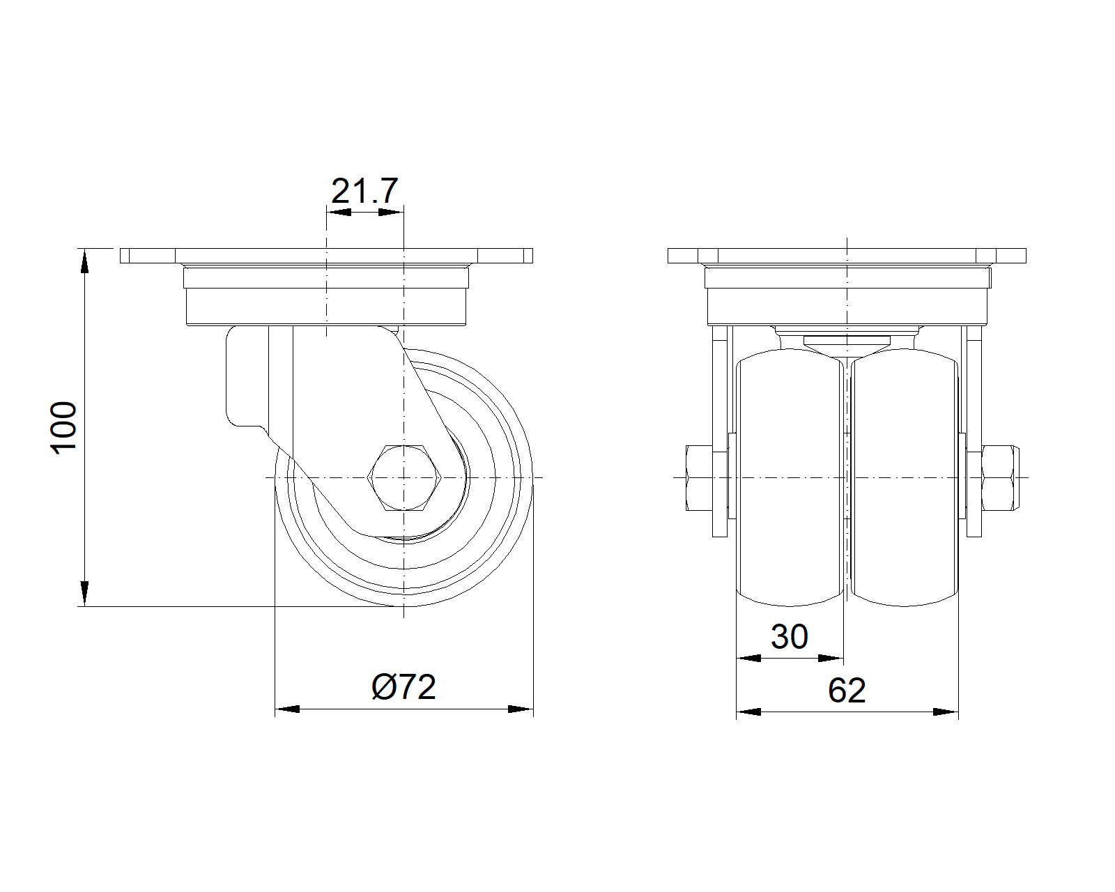 đơn vị mét đế quốc Đường kính bánh xe 72mm Chiều rộng bánh xe 62mm |
