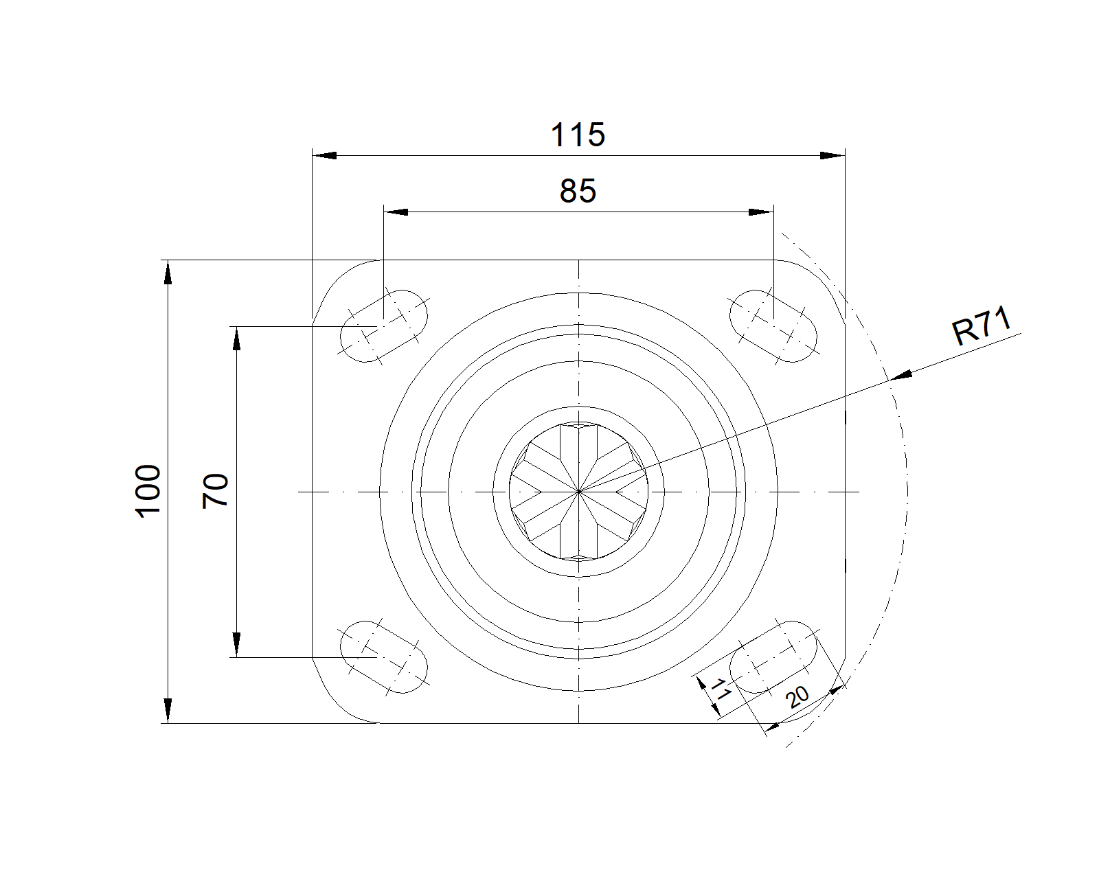 Quy cách tấm lắp 92 x 68mm khoảng cách các lỗ trên tấm nền 85 x 70mm Khoảng cách các lỗ lắp 11 x 20mm Độ lệch tâm 21.7mm Sự can thiệp quay 142mm Tổng chiều cao 100mm Bán kính xoay 71mm Độ cứng 92±5° Shore A Tải trọng (động) 80kgs |