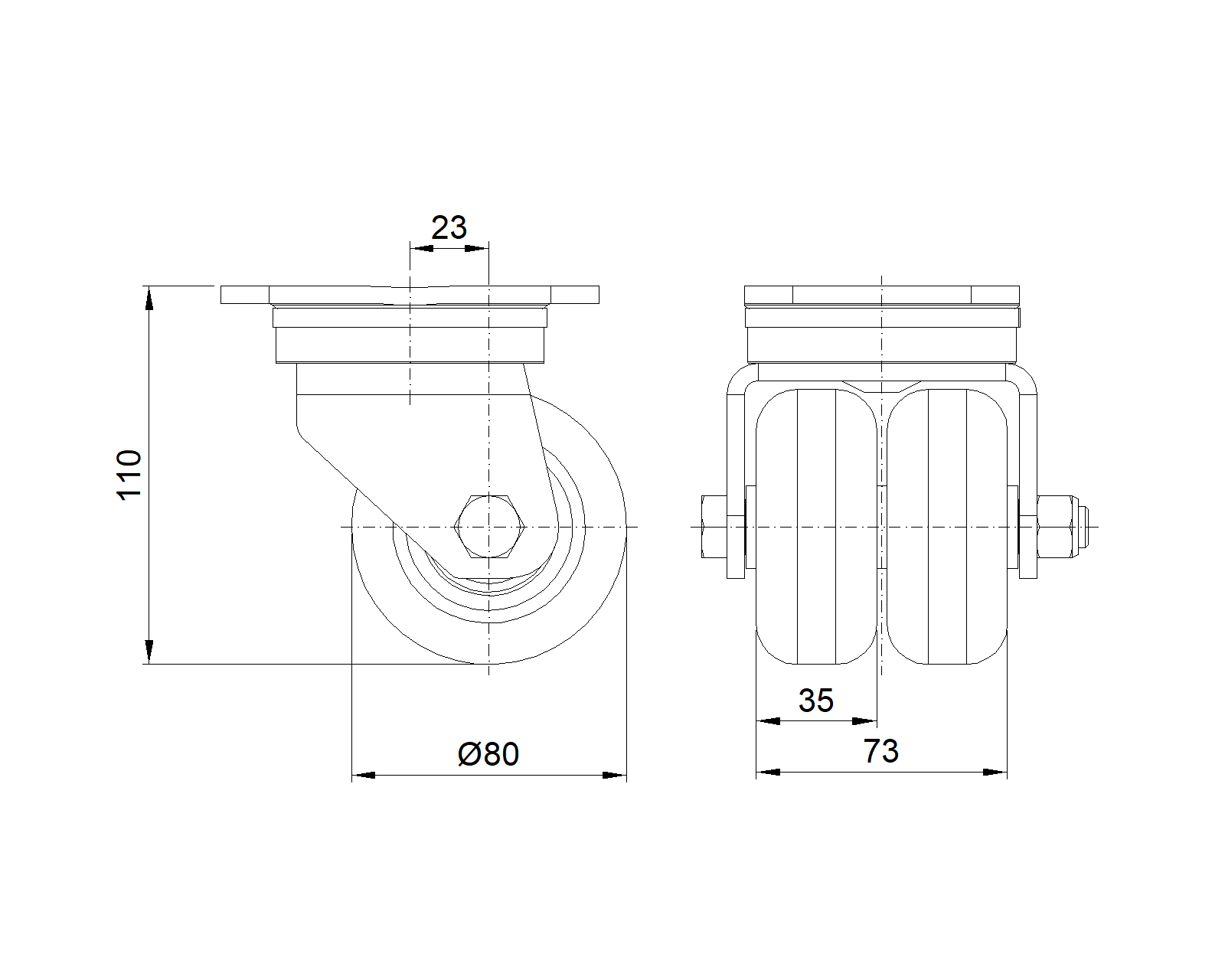 | QPU Bánh xe (nâu phẳng) Đường kính bánh xe × Chiều rộng bánh xe 80 × 35 mm |