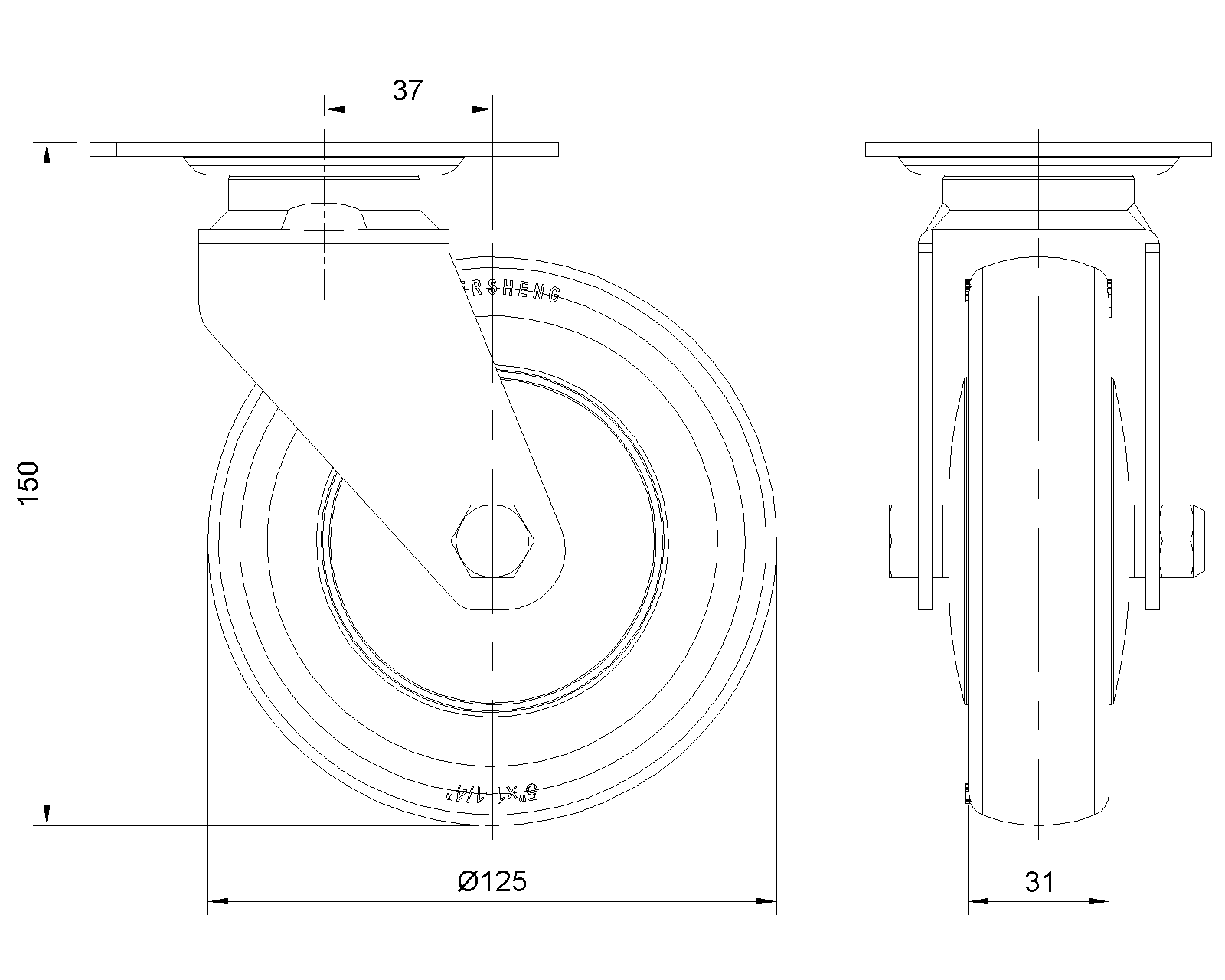 | PPR Bánh xe dẫn điện (đen và xám nhạt) Đường kính bánh xe × Chiều rộng bánh xe 125 x 31mm |