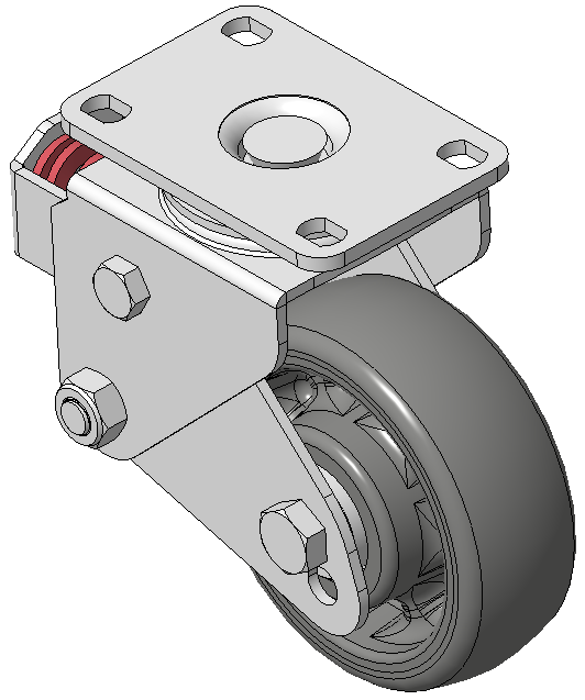 Hoàn thiện mạ kẽm, lắp đế, khoảng cách lỗ 75x45 Lõi gang với gai polyurethane chất lượng cao Vòng bi bánh xe màu xám đậm, hoàn thiện bằng ngọc trai—vòng bi chính xác |