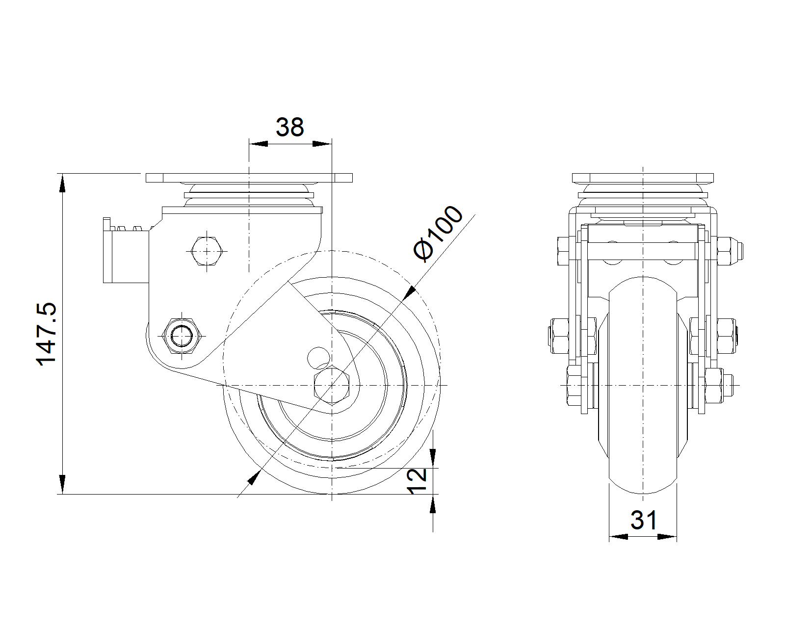 | AQPU Bánh xe (Xám vòng cung) đường kính bánh xe × chiều rộng bánh xe 100 x 31mm |