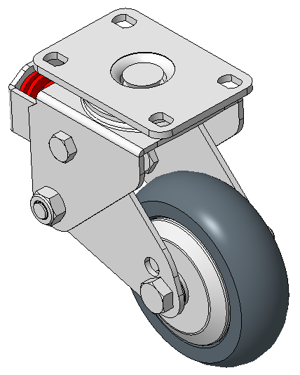 Hoàn thiện mạ kẽm, lắp đế, khoảng cách lỗ 75x45 Lõi gang với gai polyurethane chất lượng cao, màu xám nhôm Vòng bi bánh xe—vòng bi chính xác |