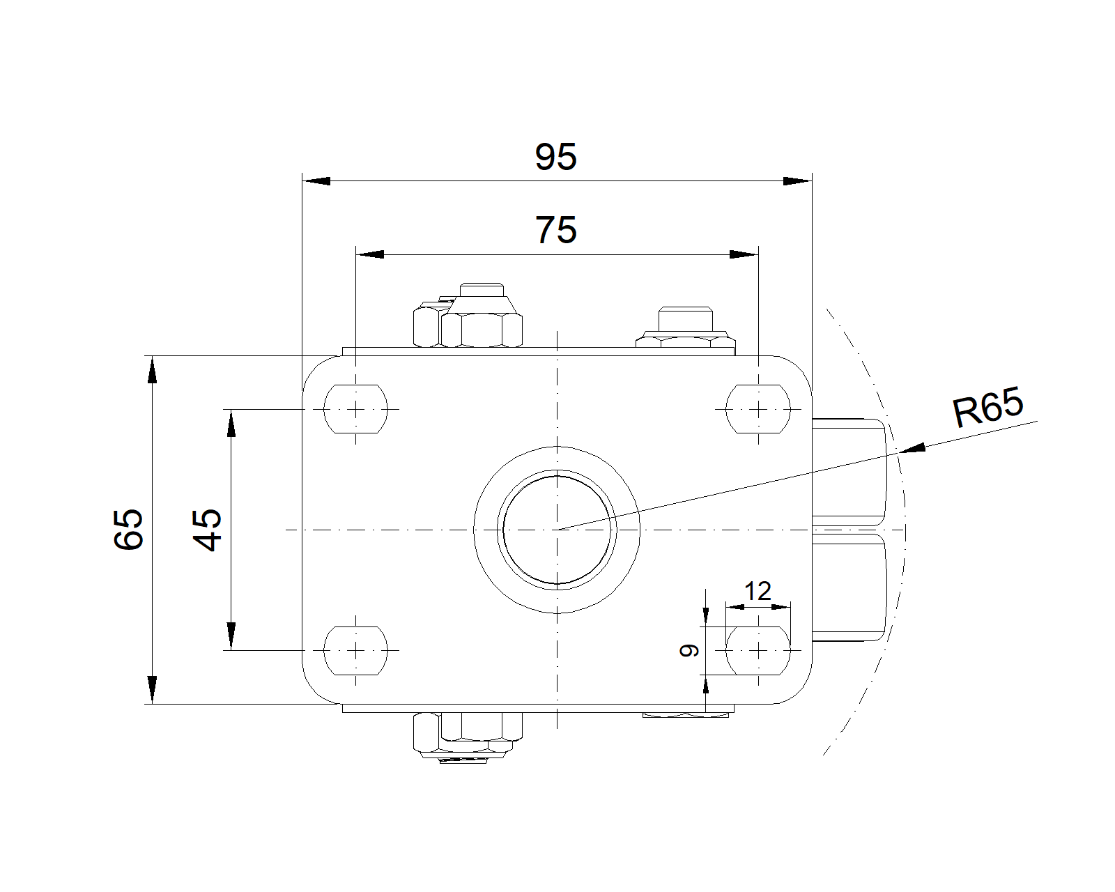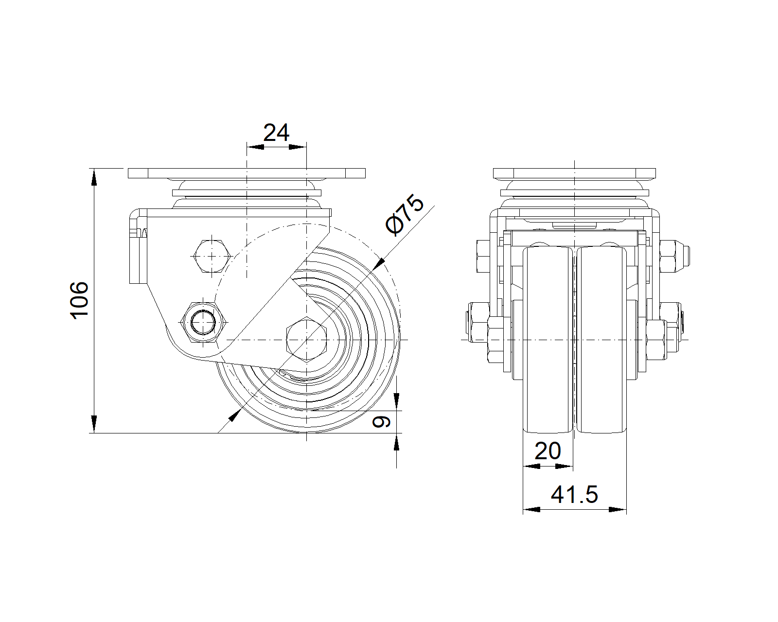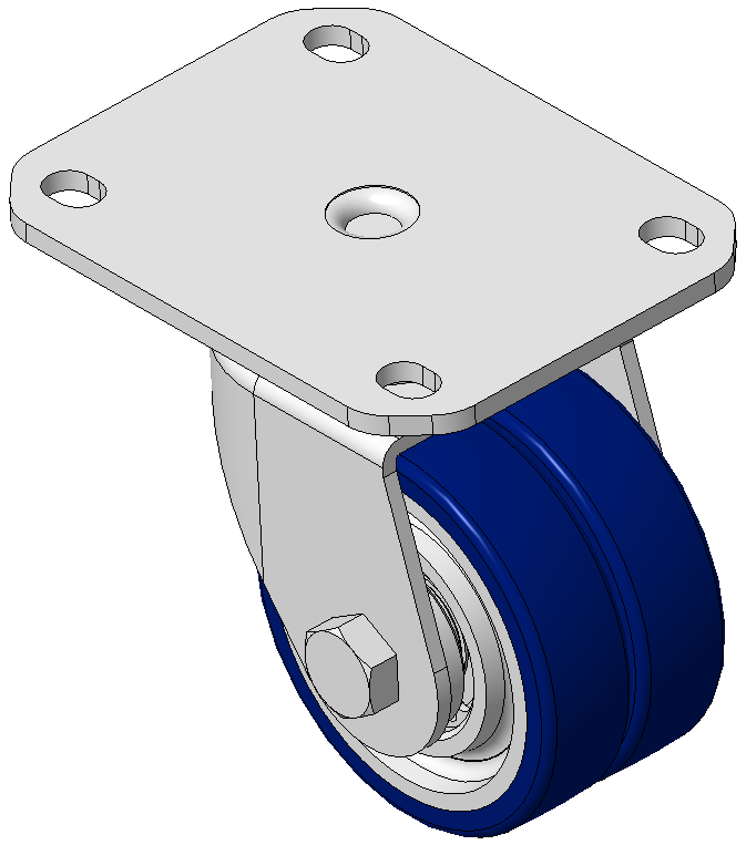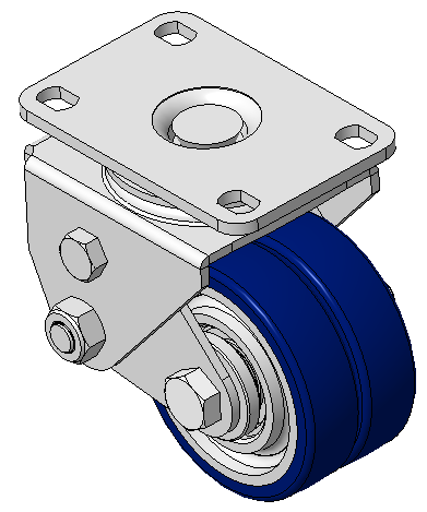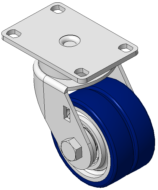 Hoàn thiện mạ kẽm, lắp đế, khoảng cách lỗ 75x45 Lõi gang với gai polyurethane chất lượng cao Hoàn thiện màu xanh, ổ trục bánh xe—ổ trục bi chính xác |