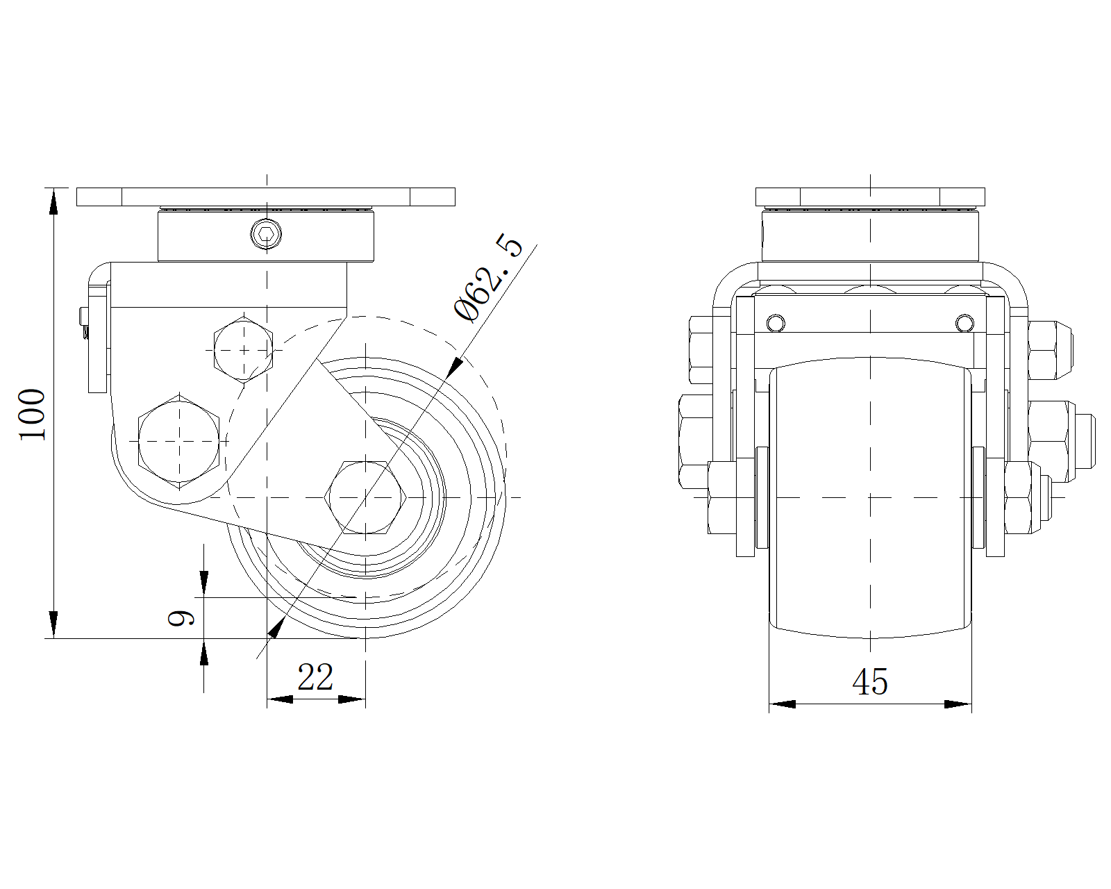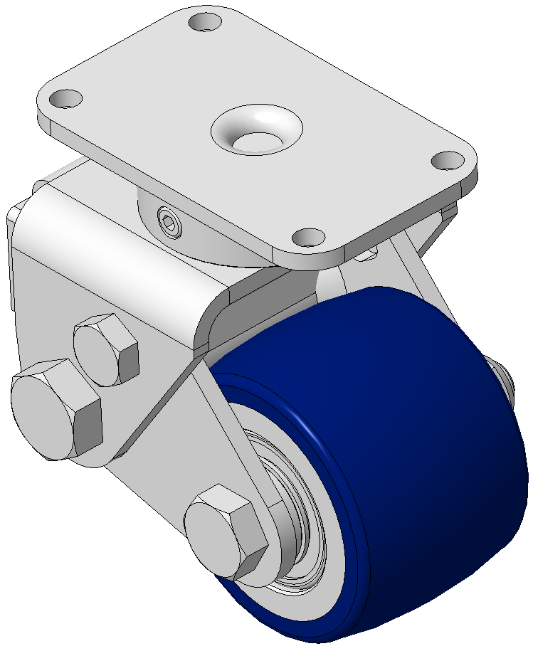 Hoàn thiện mạ kẽm, lắp đế, khoảng cách lỗ 70x37 Lõi gang với gai polyurethane chất lượng cao Hoàn thiện phay màu xanh, ổ trục bánh xe—ổ trục bi chính xác. |