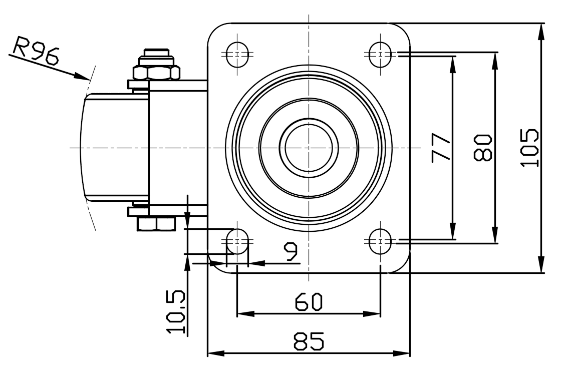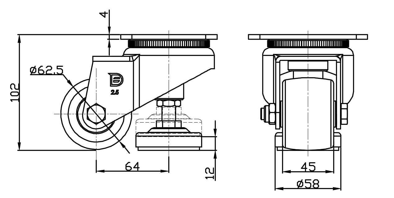 Wheel Tread: high quality polyurethane Wheel Center: cast iron core Drawings are for reference only and may differ from the product |