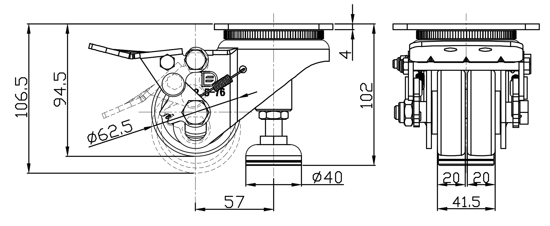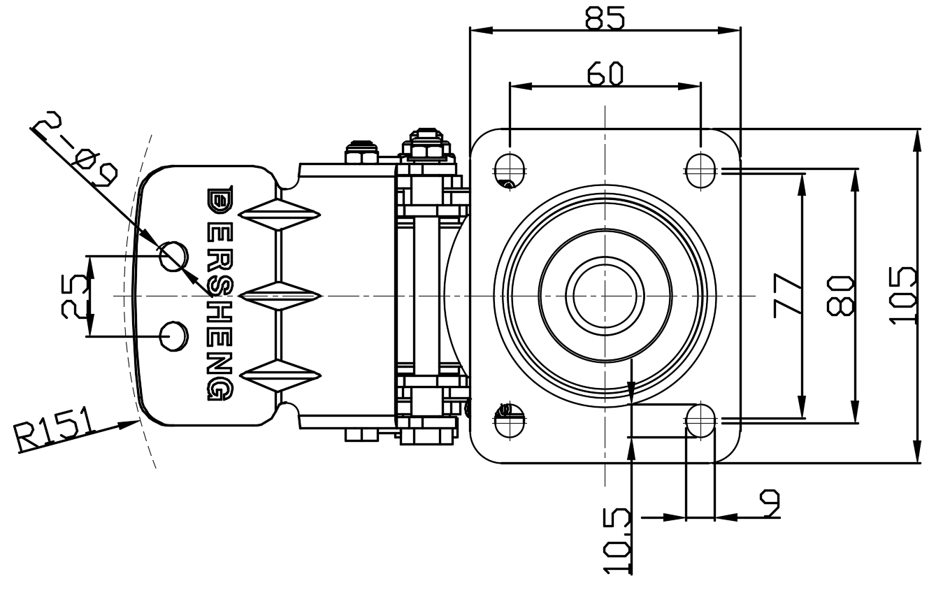 Wheel Tread: high quality polyurethane Wheel Center: cast iron core Drawings are for reference only and may differ from the product |