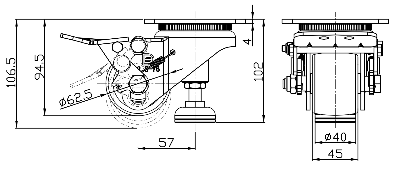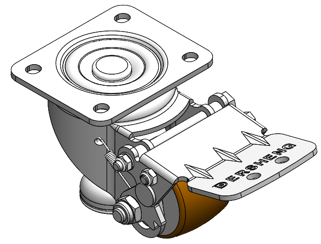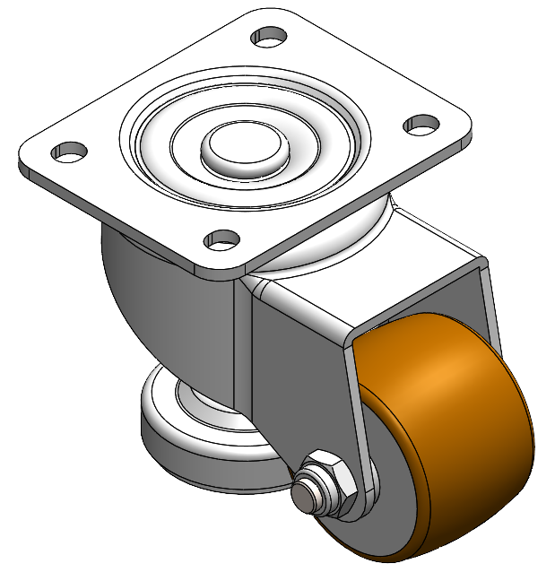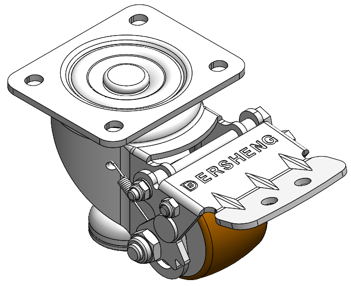 Height Adjustable Leveling Caster. Top Plate with Riveted, Stamping Fork 44.5 x 30mm (1-3/4" x 1-1/8") Bolt Hole Spacing, Long Pedal. Zine-Plated, Top Plate (4T) Mounting Type mechanism with Height Adjustable Stand. Cast Iron Wheel Center with High Quality Polyurethane tread. Brown color, Bearing with Ball Bearing. |
