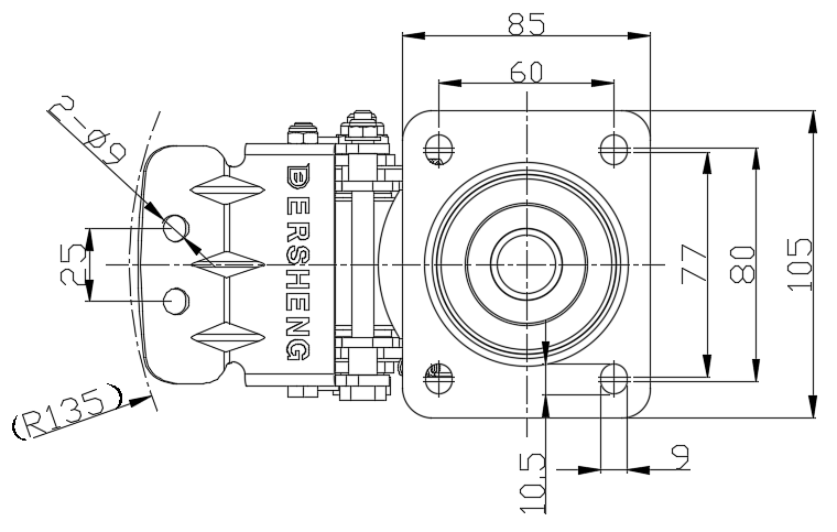 Wheel Tread: Thermoplastic (POK) Wheel Center: Thermoplastic (POK) Drawings are for reference only and may differ from the product |