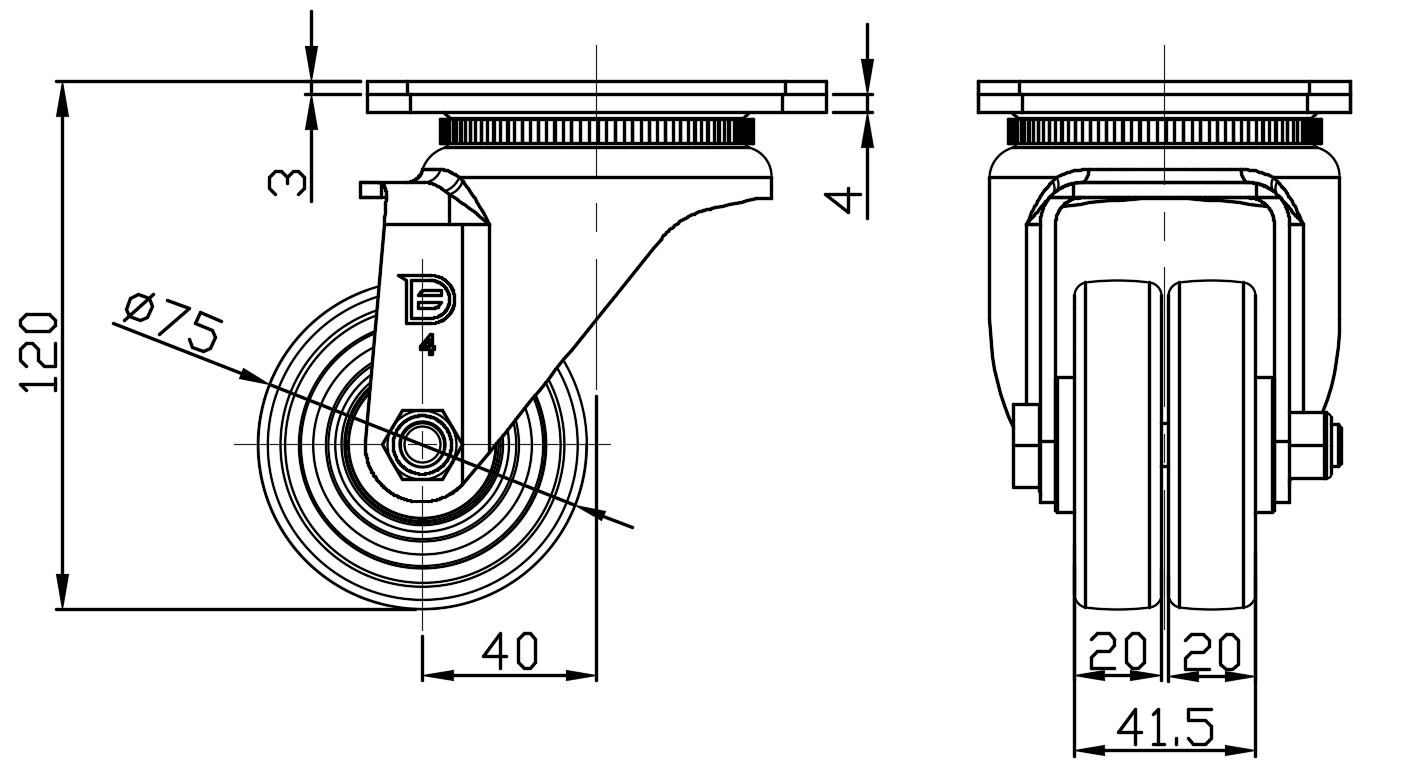 Wheel Tread: high quality polyurethane Wheel Center: cast iron core Drawings are for reference only and may differ from the product |