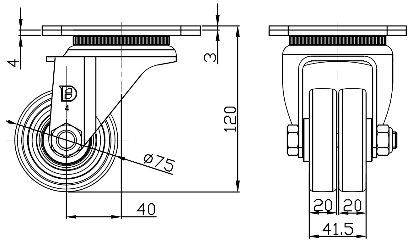 Wheel Tread: high quality polyurethane Wheel Center: cast iron core Drawings are for reference only and may differ from the product |