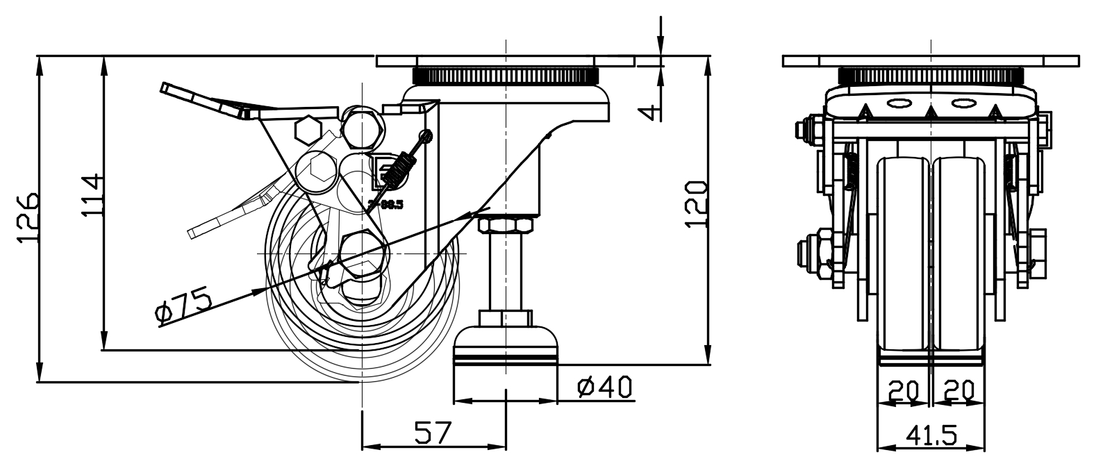 Wheel Tread: high quality polyurethane Wheel Center: cast iron core Drawings are for reference only and may differ from the product |